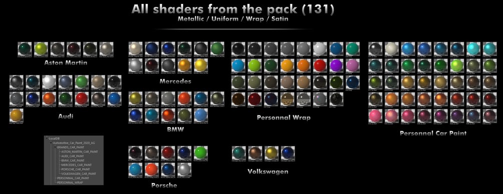 Automotive Paint Shaders 2020 | 127 Shaders | C4D/Octane .orbx files